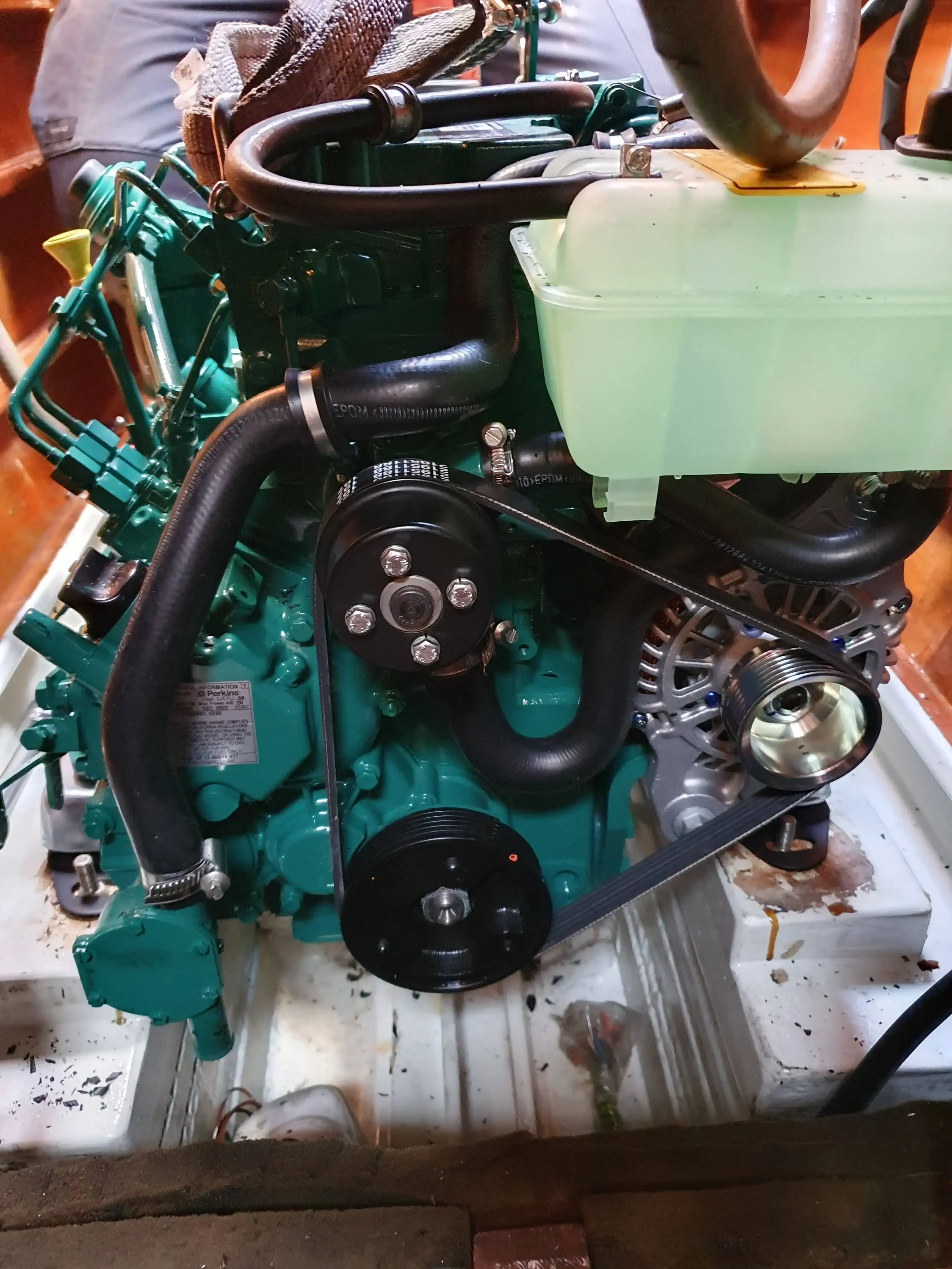 • Un chauffage Webasto, chaudière indépendante au gasoil, chauffant aussi le ballon d’eau chaude : chaque cabine, le carré et la salle d'eau ont un aérotherme avec thermostat, réglage de la température et de la vitesse de ventilation
