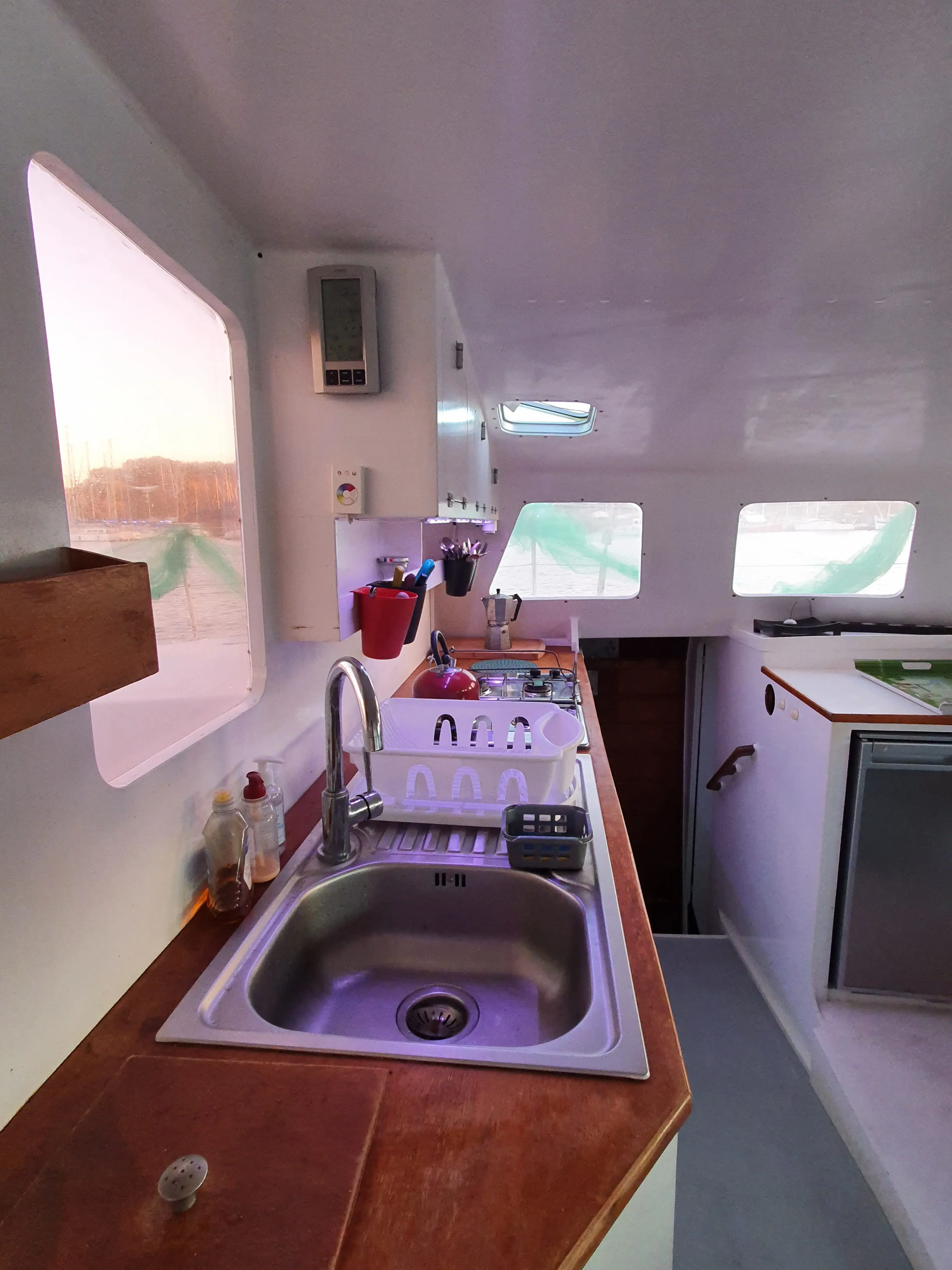 • Un ballon d’eau chaude 60l chauffé par le moteur babord, ou la chaudière webasto, ou le 220V (à quai).